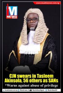 Mr. Olanrewaju Tasleem Akinsola of Onigegewura Chambers has been inaugurated as one of the 57 newly appointed Senior Advocates of Nigeria (SANs) by the Chief Justice of Nigeria, Hon. Justice Kudirat Kekere-Ekun.