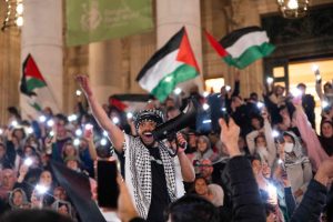 Around a thousand people marched in Paris’s Place de la Republique, Agence France-Prese (AFP) reported, while in the port city of Marseille, in southern France, around a hundred pro-Palestinian protesters were arrested in the afternoon after attempting to block access to offices of weapons maker Eurolinks, accused of selling military components to Israel.