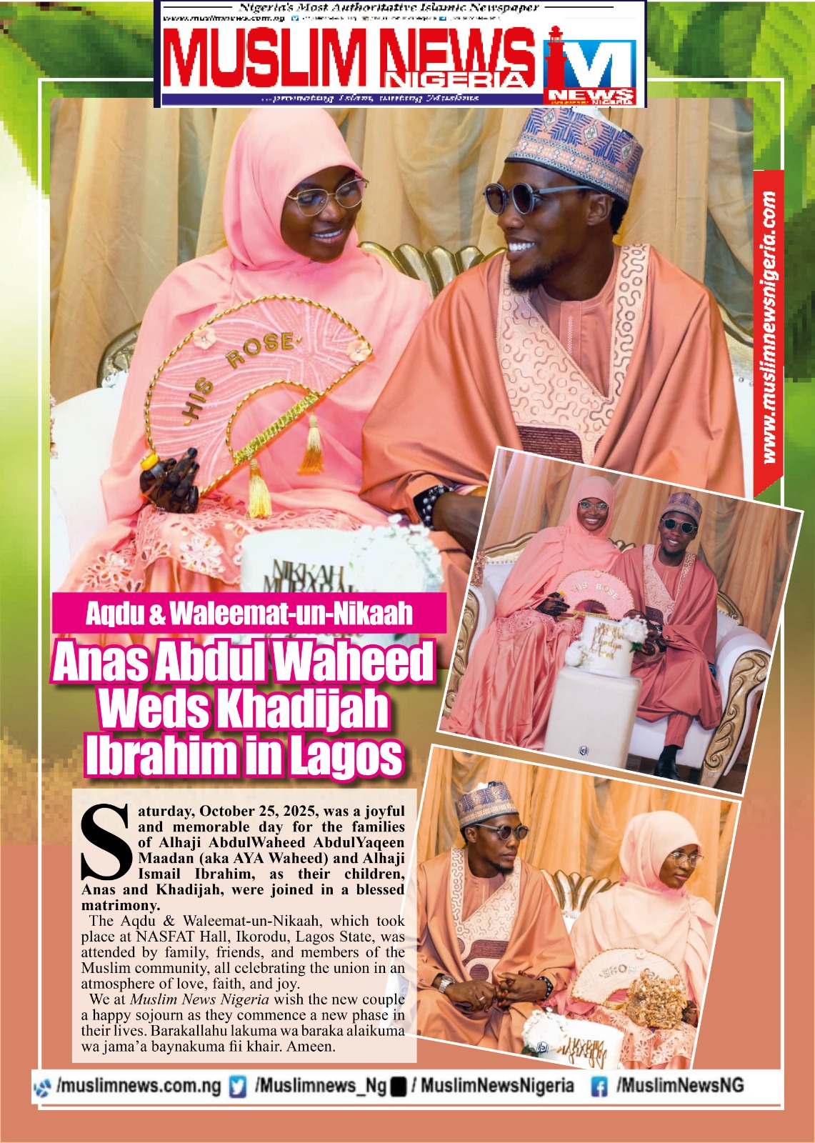 Saturday, October 25, 2025, was a joyful and memorable day for the families of Alhaji AbdulWaheed AbdulYaqeen Maadan (aka AYA Waheed) and Alhaji Ismail Ibrahim, as their children, Anas and Khadijah, were joined in a blessed matrimony.