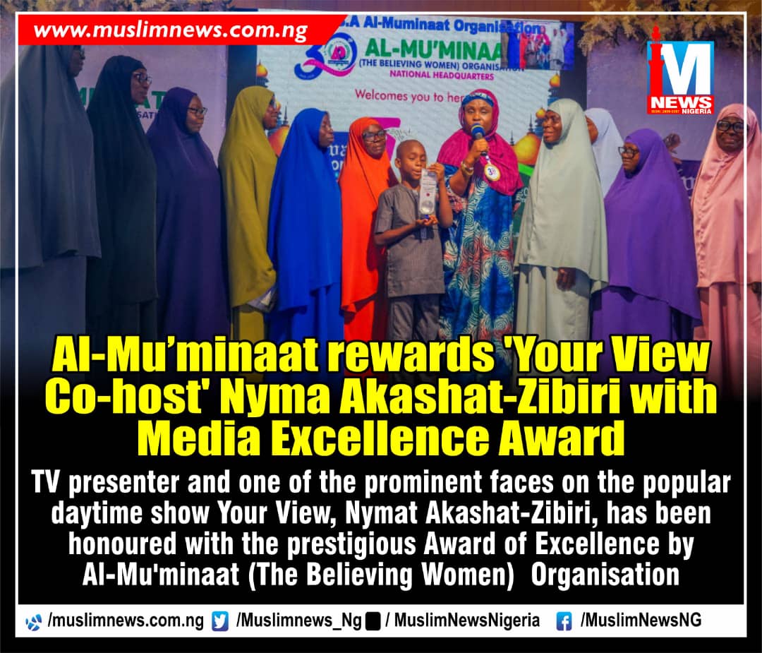 TV presenter and one of the prominent faces on the popular daytime show ‘Your View’, Nymat Akashat-Zibiri, has been honoured with the prestigious Award of Excellence by Al-Mu’minaat (The Believing Women) Organisation.