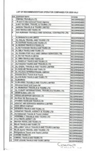 The list, approved by the 5th Board of NAHCON, includes notable names such as Hajj Mabrur Ventures Limited, Inaayatullah Travels and Tours Limited, and Al-Hujjaj International Umrah, among others