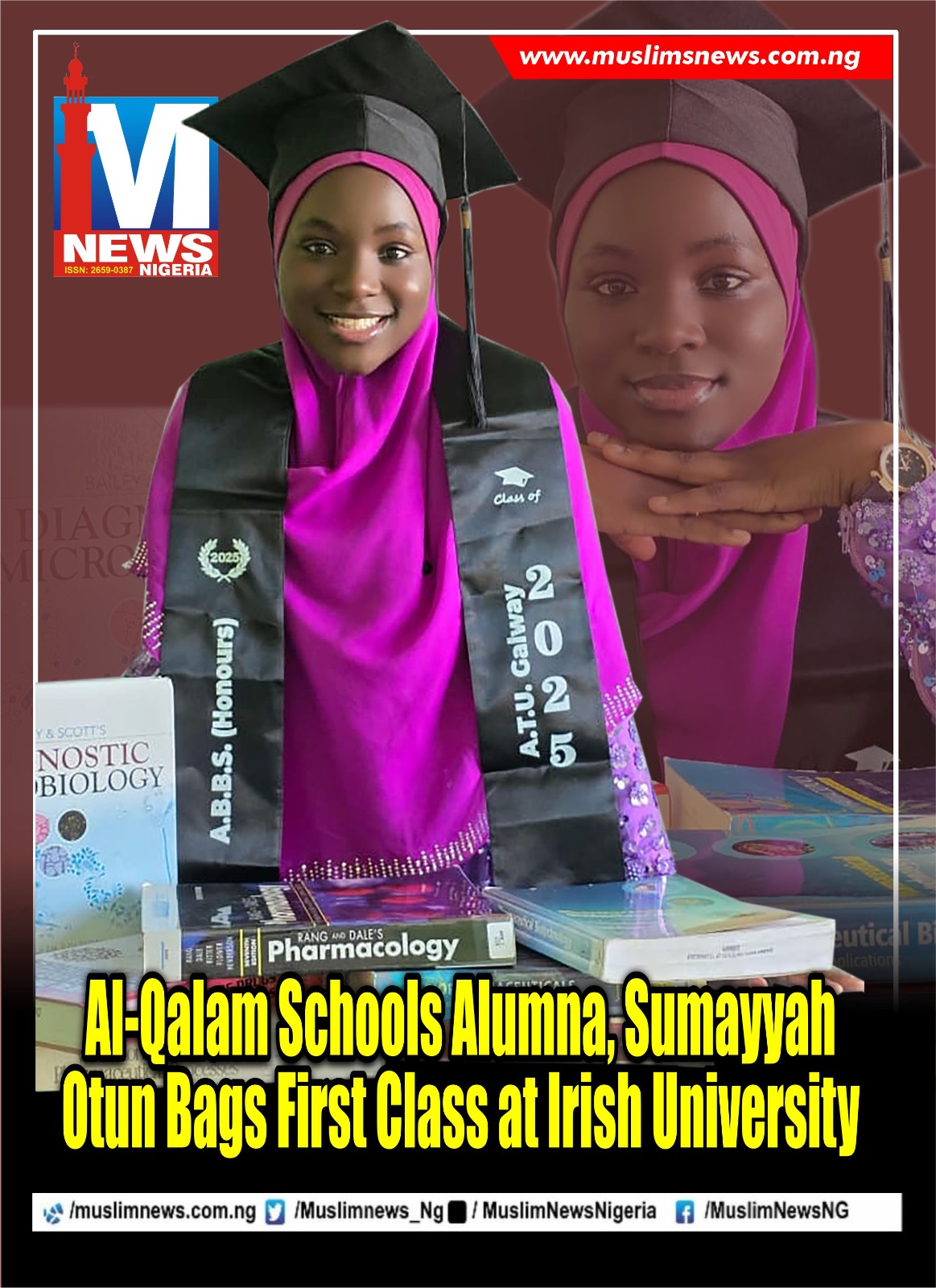 Sumayyah Olamide Otun, a distinguished ex-pupil of Al-Qalam Schools, Ibadan, has once again brought pride to the Ummah and her alma mater by graduating with First Class Honours (GPA 4.60 out 5.0) from the prestigious Atlantic Technological University (ATU), Galway, Republic of Ireland.