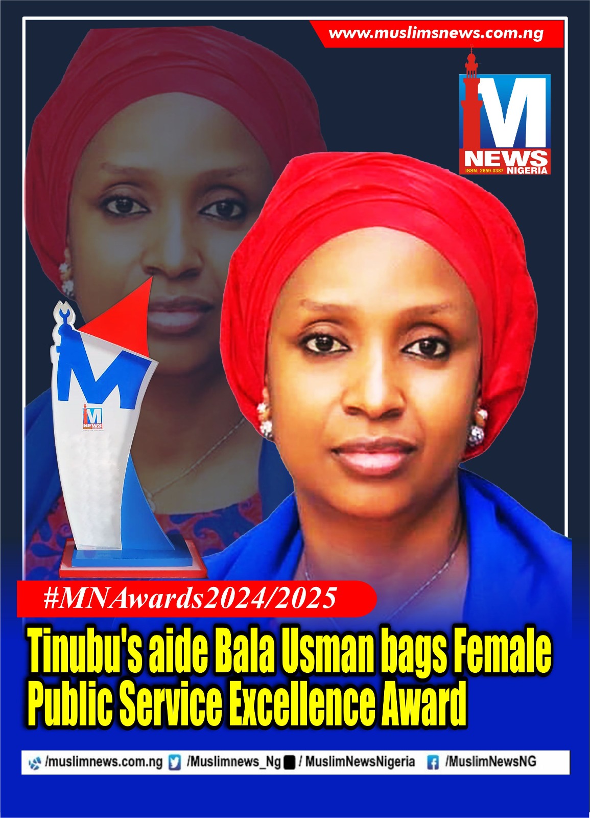 Special Adviser to President Bola Ahmed Tinubu on Policy and Coordination, Hajiya Hadiza Bala Usman, has been honoured with the prestigious Female Public Service Excellence Award by Muslim News Nigeria, the country’s most authoritative Islamic newspaper.