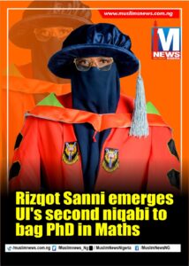 She becomes the second known niqabi to attain a PhD at UI, following Dr. Kafilat Motunrayo Oyaremi.