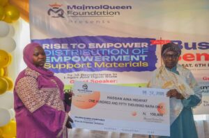 Through her humanitarian platform, the MajmolQueen Foundation, Hajia Ashimi disbursed cash grants and equipment worth millions of naira to over 14 small business owners.