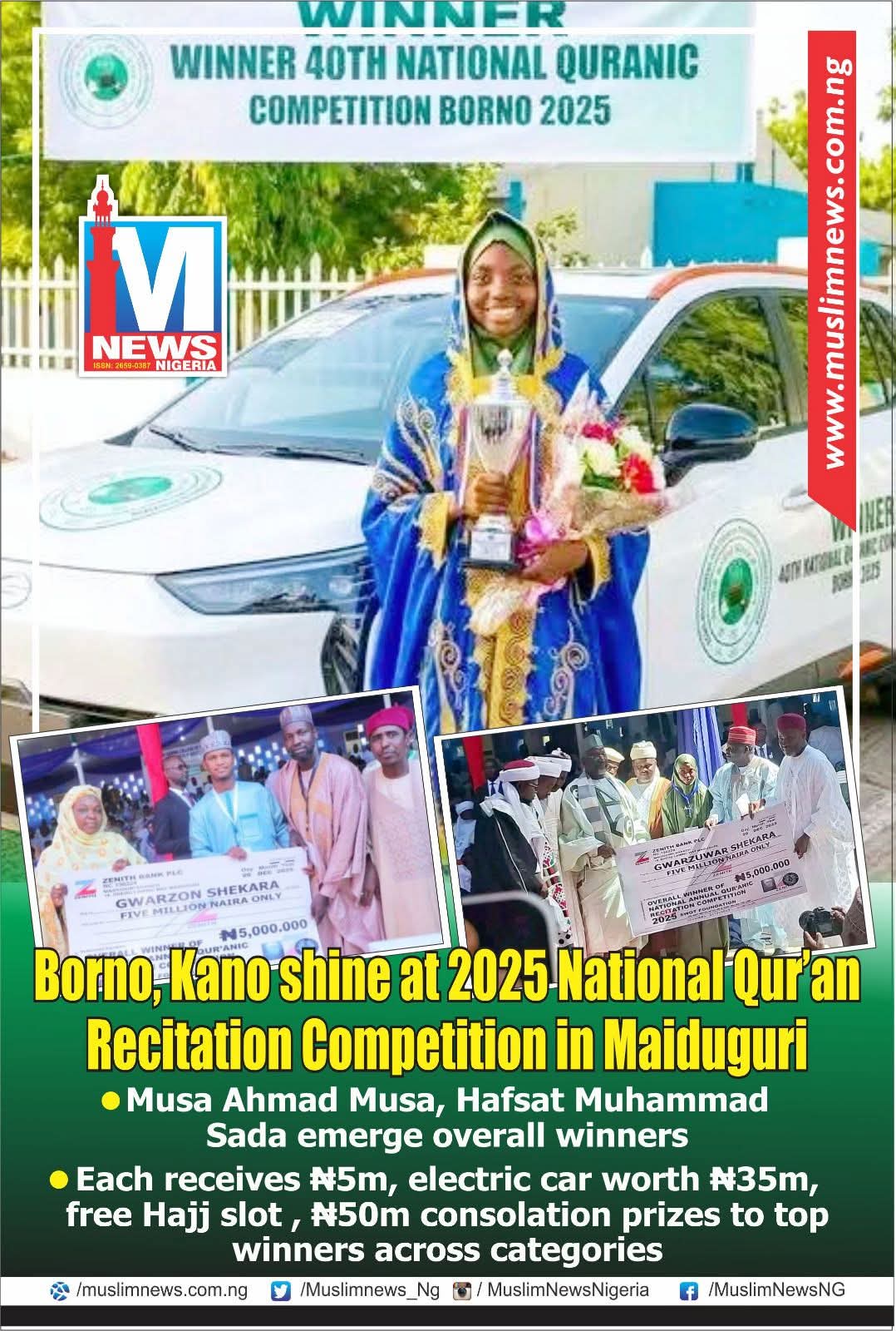 The 2025 edition of the National Qur’an Recitation Competition has come to a remarkable close in Maiduguri, with Borno and Kano States emerging as top performers in the male and female categories respectively.