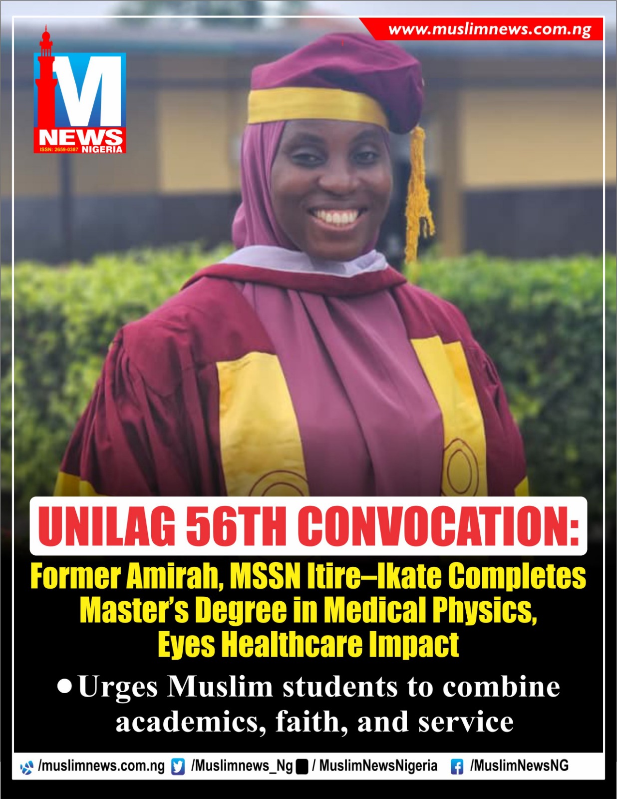 UNILAG 56TH CONVOCATION: Former Amirah, MSSN Itire-Ikate Completes Master’s Degree in Medical Physics, Eyes Healthcare Impact
