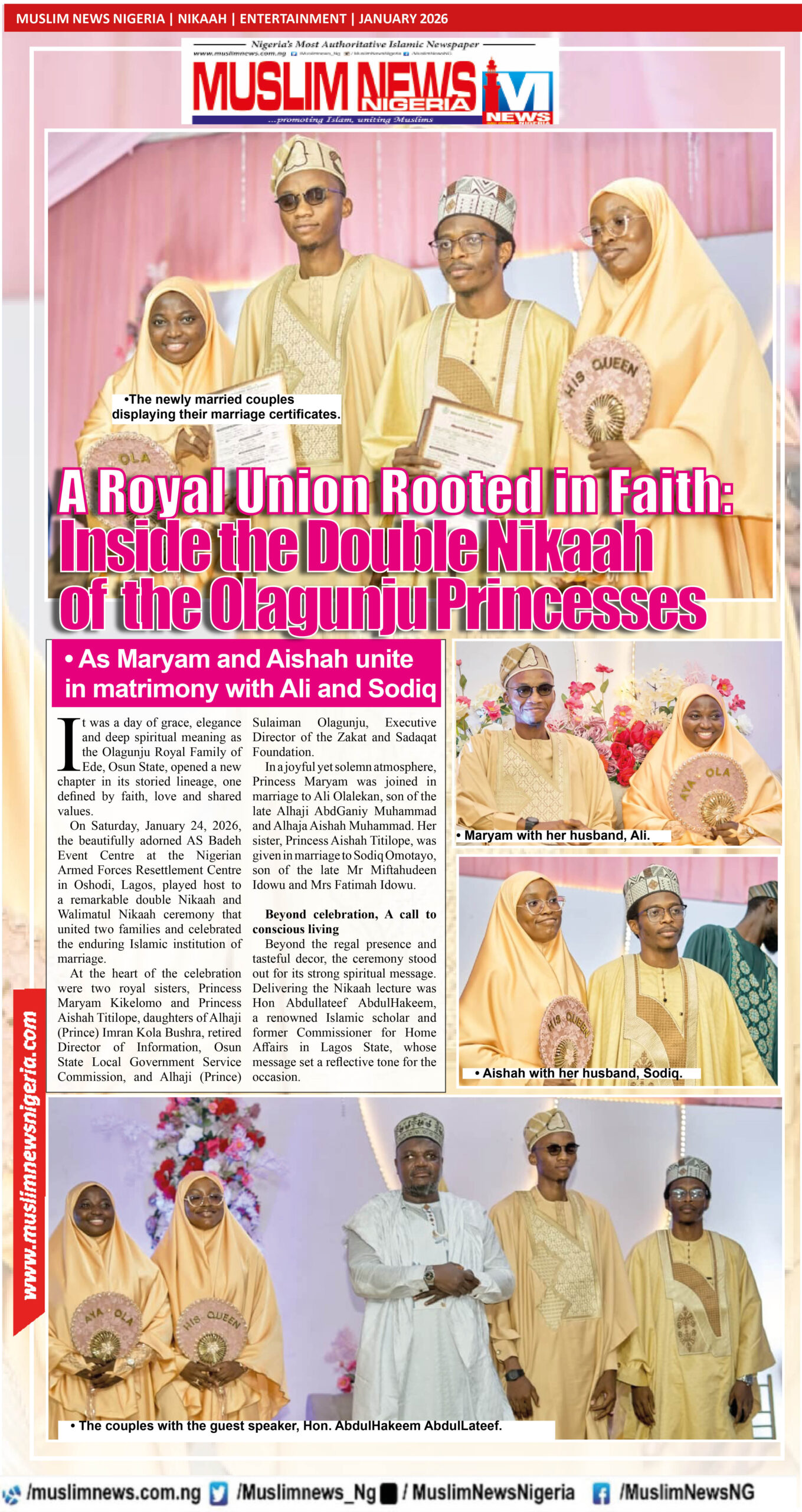 In a time when many marriages begin with celebration but lack spiritual grounding, the Double Nikaah of the Olagunju princesses stood as a reminder that faith remains the strongest foundation for love.