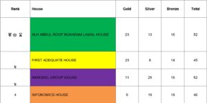 Mukadam Lawal (Green) House tops medals table