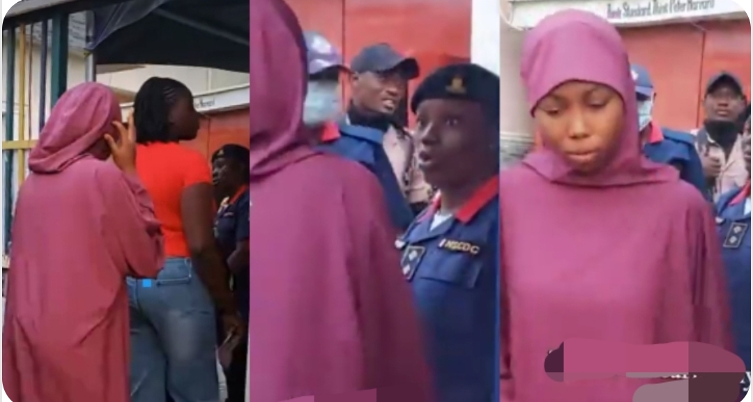 In a separate incident, another video surfaced online showing a security official with the NSCDC also preventing a modestly dressed Muslim student from entering an examination hall at Peter Harvard International School in Kubwa, Abuja.